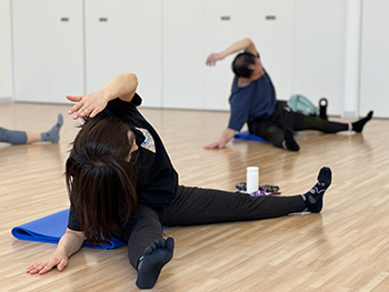| 内容 | 呼吸と共に全身のストレッチを行います。自分では気がつかない身体の歪みを矯正し、身体の不調を整え、日々凝り固まった身体のケアをしていきます。 強度:★ |