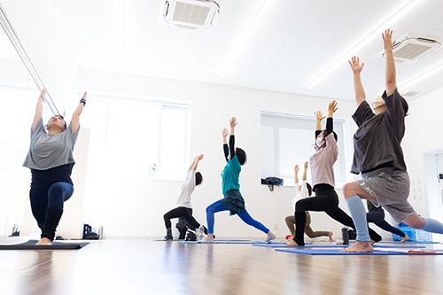 | 内容 | 身体をほぐし、筋肉を鍛えることによって基礎体力を向上し、身体の機能を向上させ、心身ともにリフレッシュします。それぞれの参加者に合わせて丁寧にアサナ(ポーズ)を行っていくので、初めての方でも安全にレッスンに参加でき、その効果を感じることができます。一般・シニア・マタニティの方まで、一緒にヨガを楽しみましょう。 強度:★★ |
