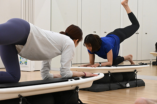 | 内容 | 揺れるボードの上で様々なエクササイズを行うことで、身体の軸を安定させ、身体のしなやかさや全身のスタイルアップ、全身の筋力アップ、スポーツパフォーマンス向上などに繋がります。 強度:★★★ |