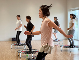 | 内容 | UBOUNDは、ミニトランポリンの弾力面を使用するハイインテンシティ(高強度)かつミニマムインパクト(膝・足首等への負担の少ない)トレーニングプログラムです。1回のクラスでおおよそ400~900kcalを消費することができます。独自のラディカルミュージックとトランポリンの躍動でシンプル、かつテンポよく実施されますが、体幹筋群に効果的な刺激を与えることができます。 強度:★★★ |