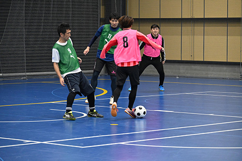 | 個人参加フットサルとは | ・個人単位で参加できるフットサル ・集まった方を、1チーム5~6人に分け、繰り返し試合を行う ・試合時間は5~6分 ・キーパーは交代でプレー |